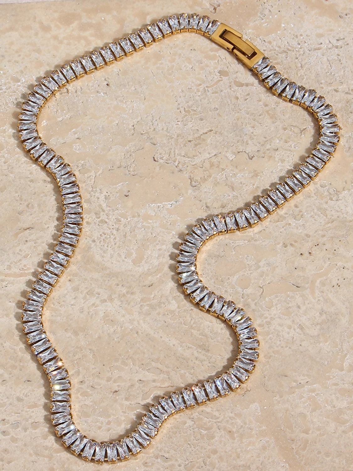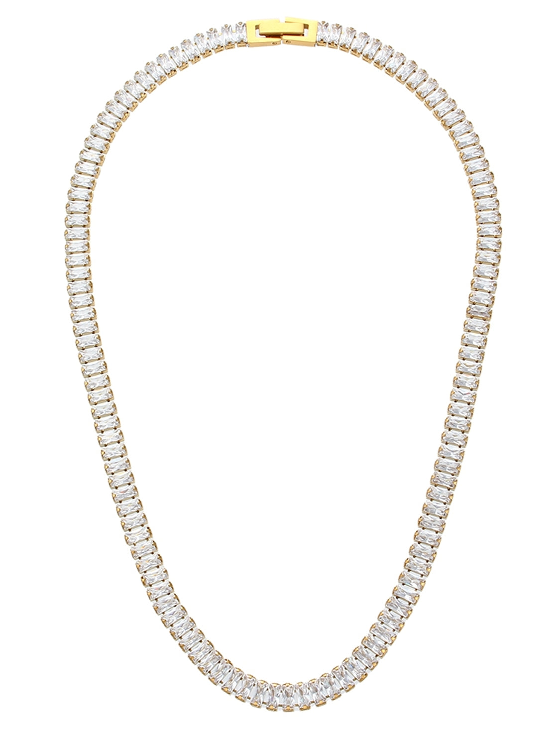 Espectacular collar tipo gargantilla, con circonitas rectangulares.