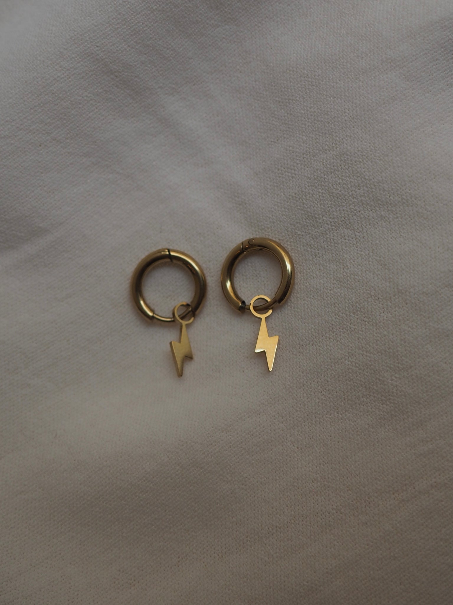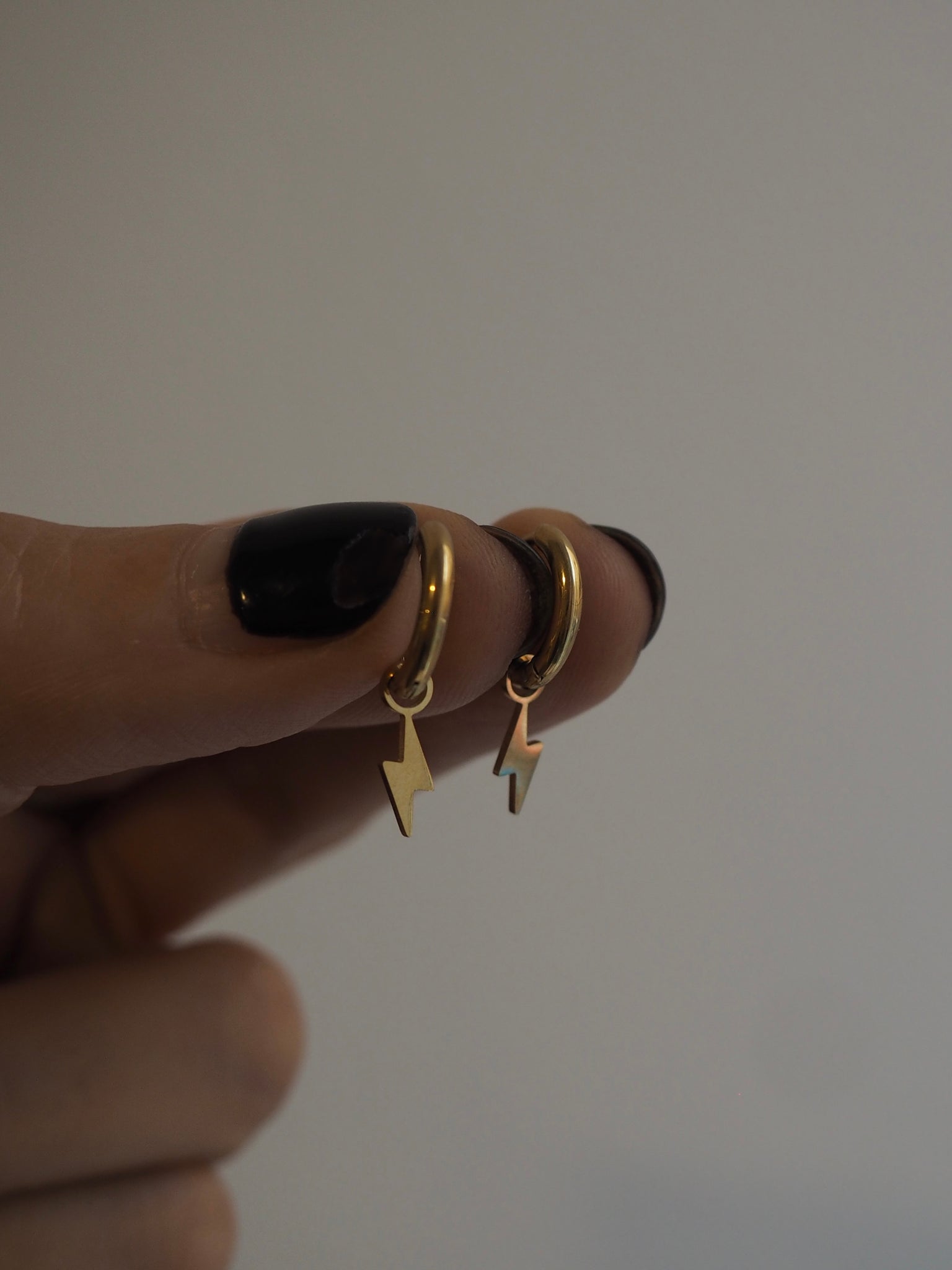 Pendiente aro con charm de rayo, puede sacarse y llevar sólo el aro.