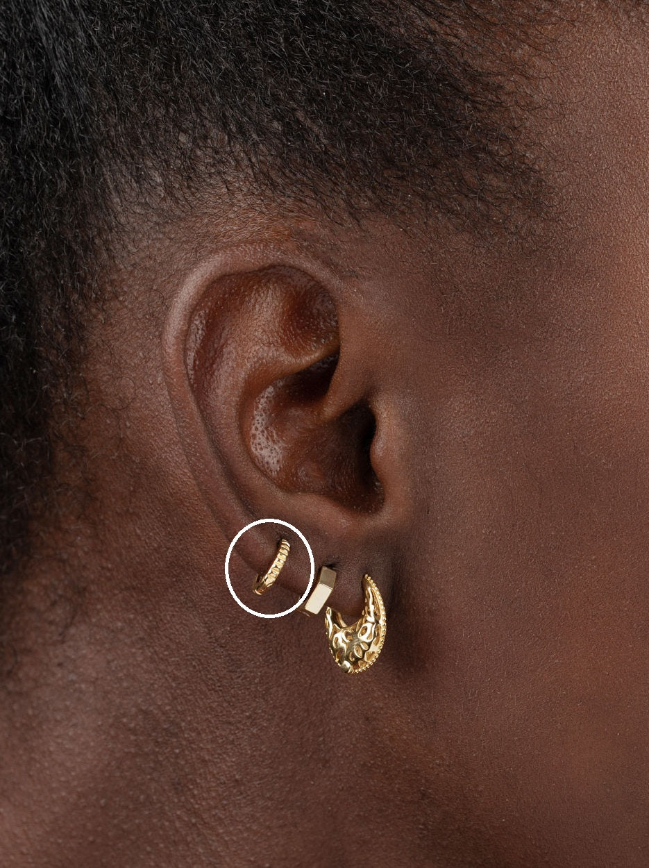 Pendientes aro con cierre muy cómodo de "click" muy pequeño, perfecto para llevar en piercing en la zona alta de la oreja, y también en segundos agujeros. En primer agujero no lo aconsejamos a todos ya que podría quedar muy justo, si hay mucha distancia entre el agujero y el final de la oreja.