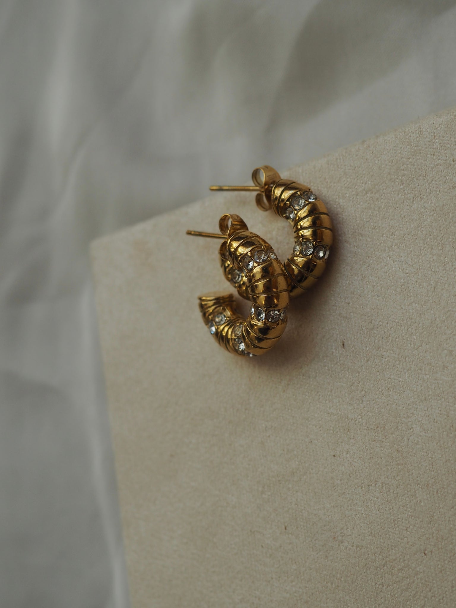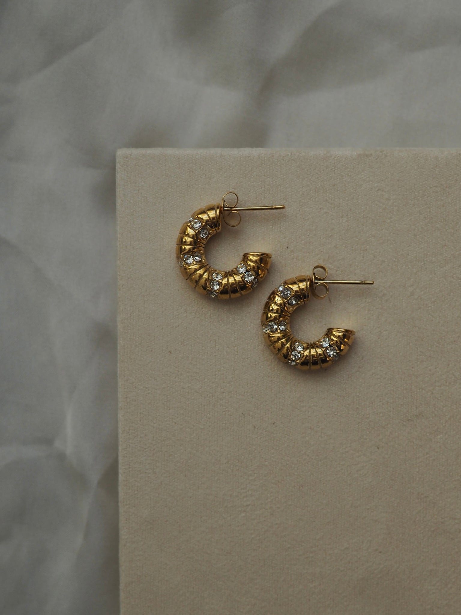 Pendientes aros circonitas 18mm • Acero dorado 316L baño oro 18K