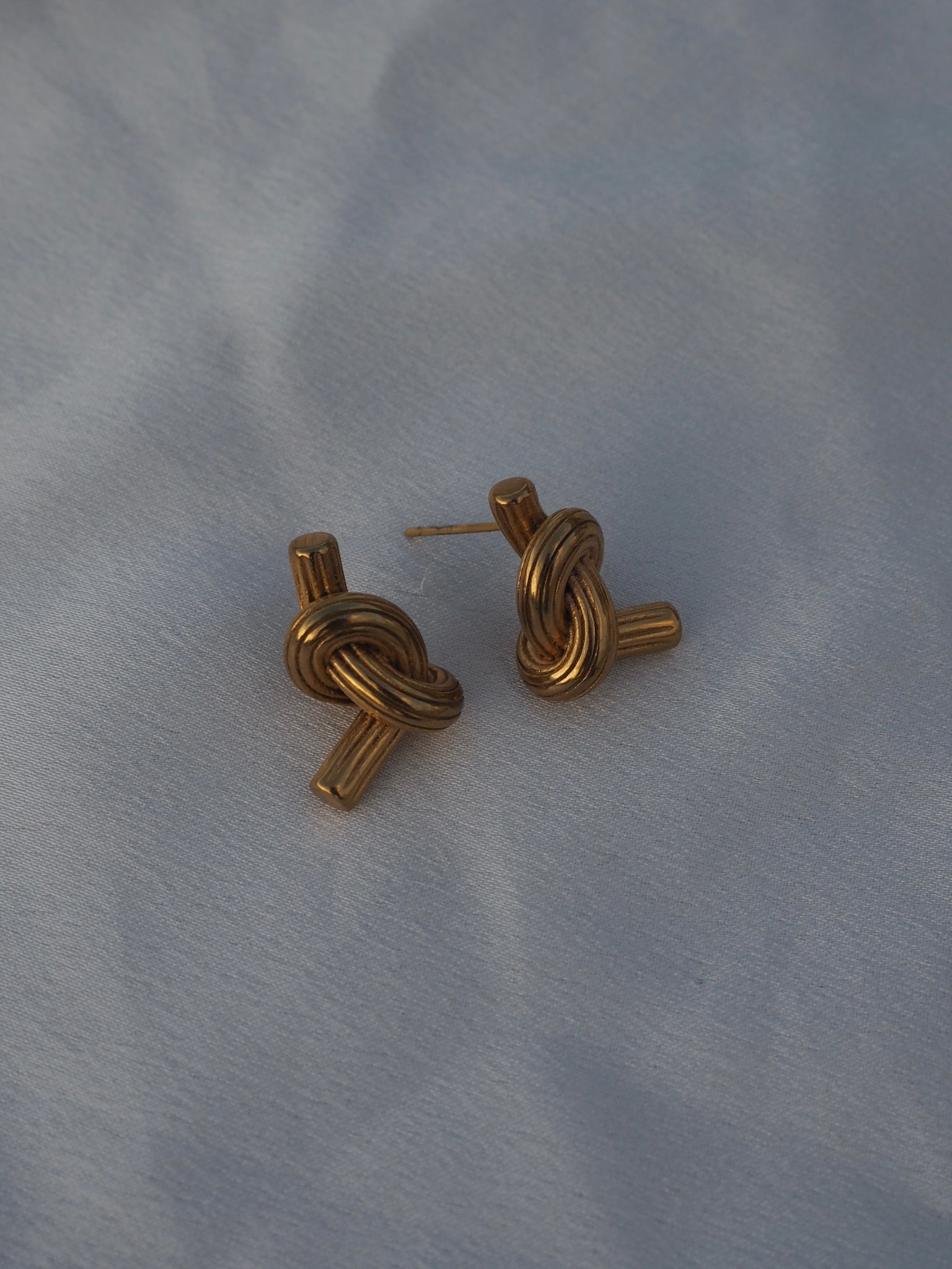 Pendientes con forma de nudo pegados a la oreja, muy favorecedores.