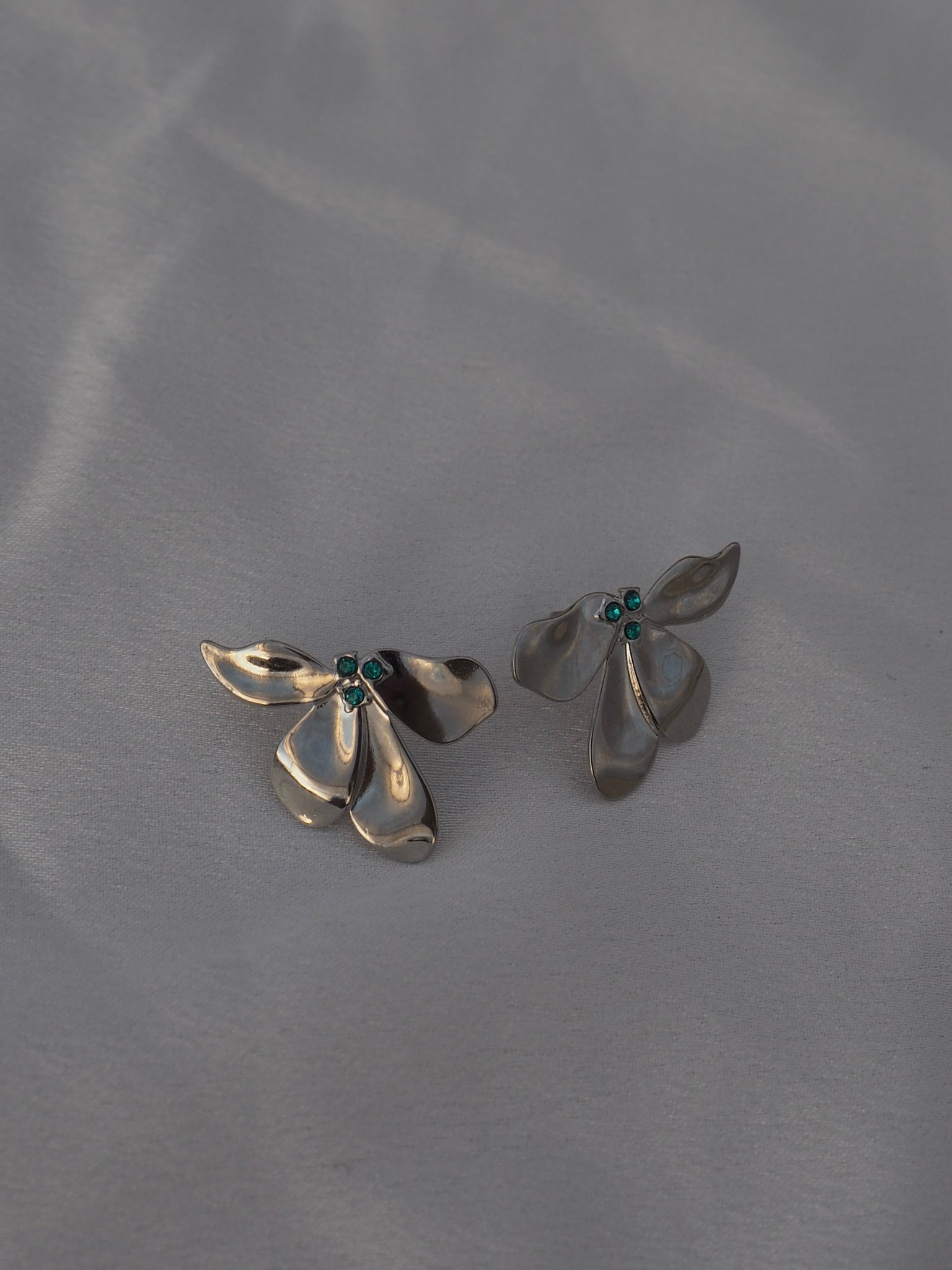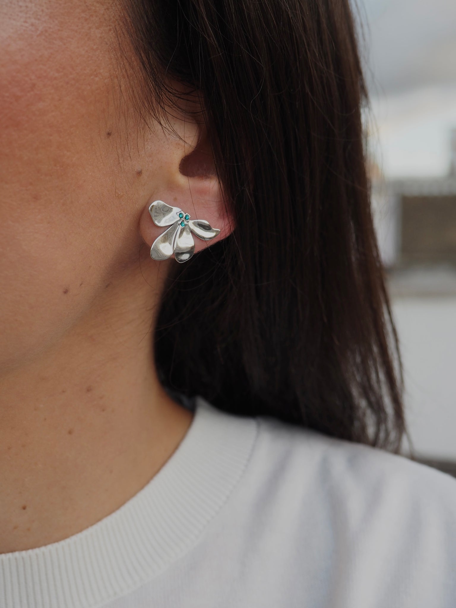 Pendientes con forma de flor y detalle de 3 circonita engarzadas azules.