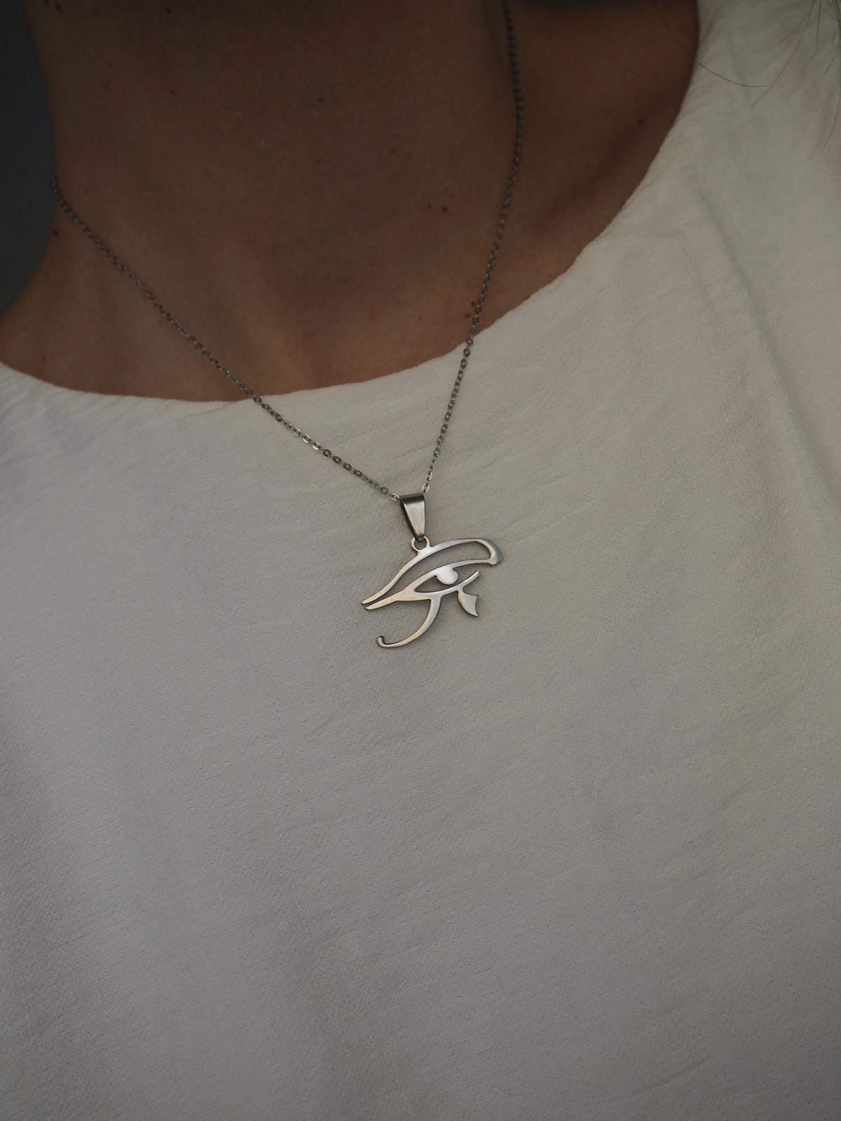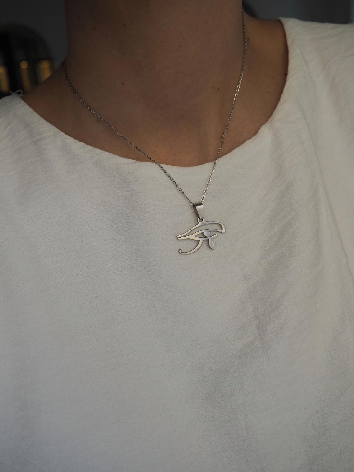 Collar de cadena clásica con charm de ojo egipcio Horus.