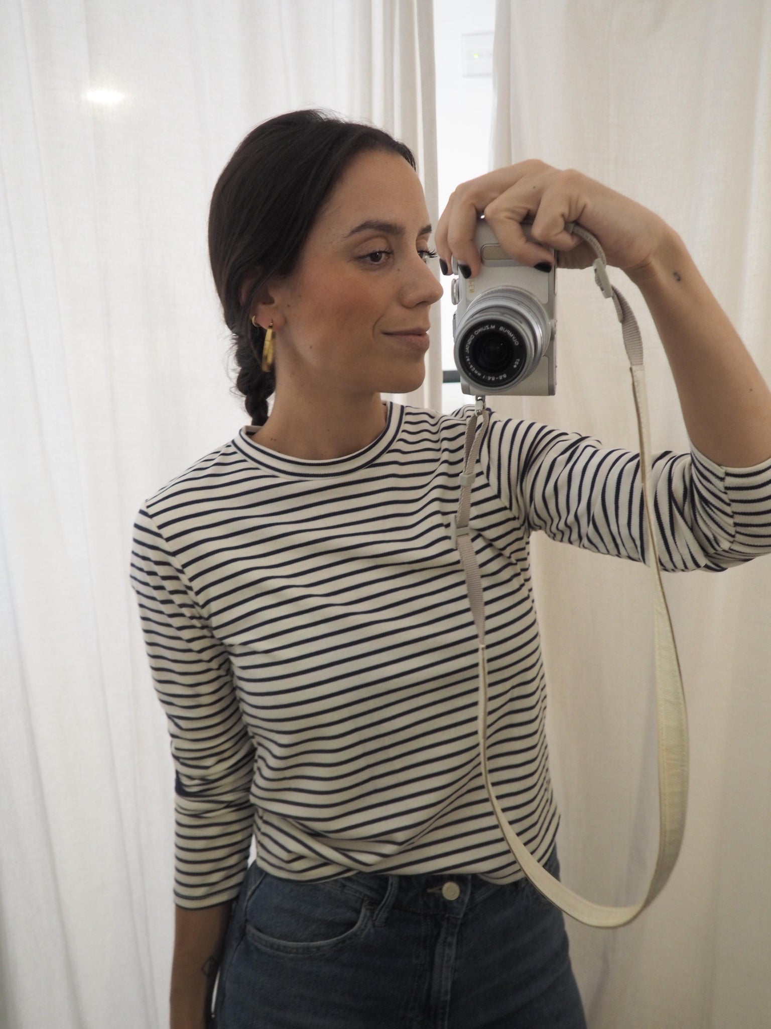Camiseta de rayas en color azul marino de manga larga.