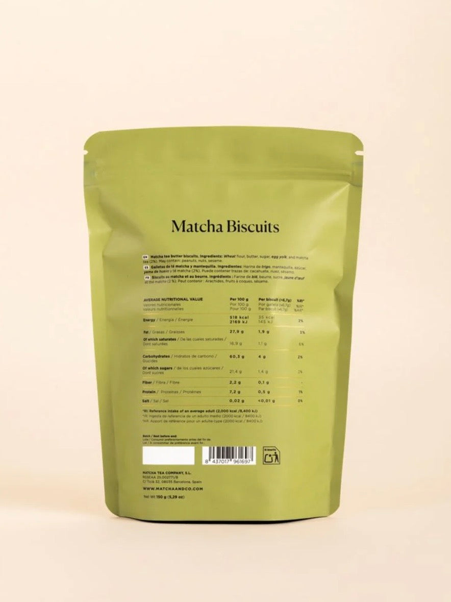 Galletas artesanales de mantequilla y matcha, elaboradas con ingredientes 100% naturales. Una fusión perfecta entre el delicioso sabor de la mantequilla y el aroma envolvente del té matcha japonés. Han sido elaboradas con té matcha de grado ceremonial, el cual es rico en antioxidantes que cuidan de nuestra salud y L-teanina que aporta energía sostenida.