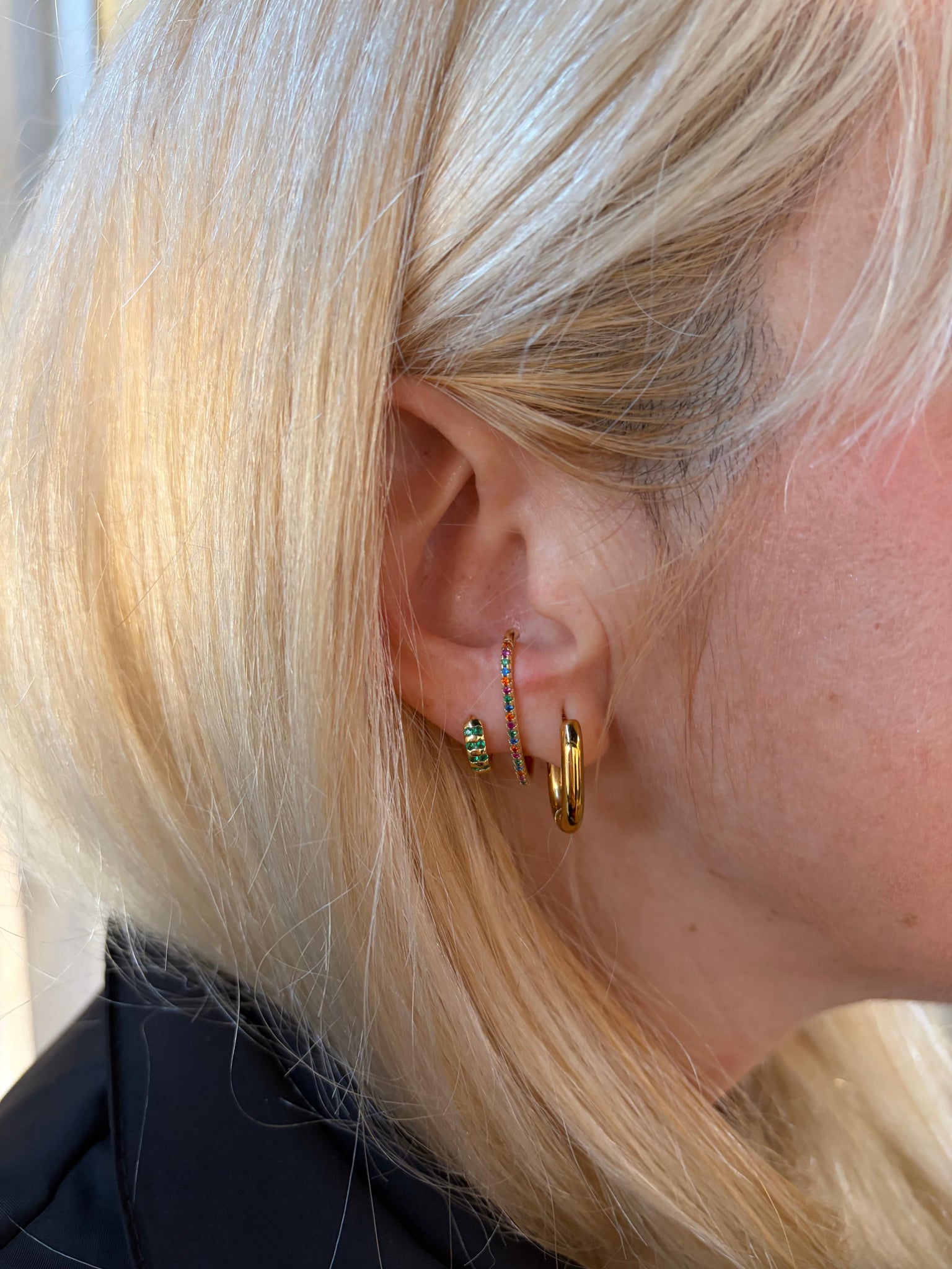 Pendiente de aro ovalado con cierre de "click" fácil.