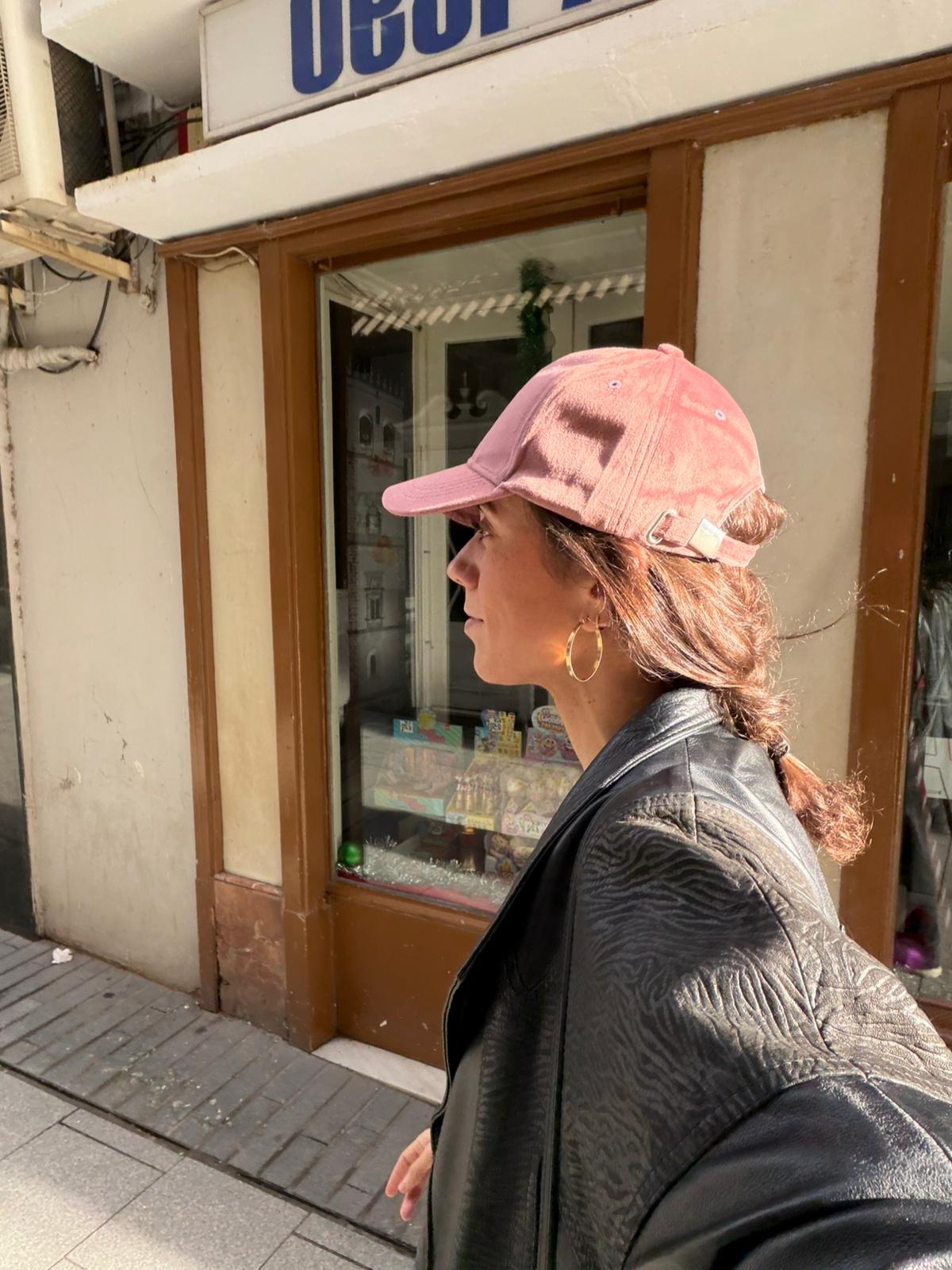 Acabado suave tipo terciopelo rosa oscuro suavecito, muy favorecedora. Forrada en su interior.